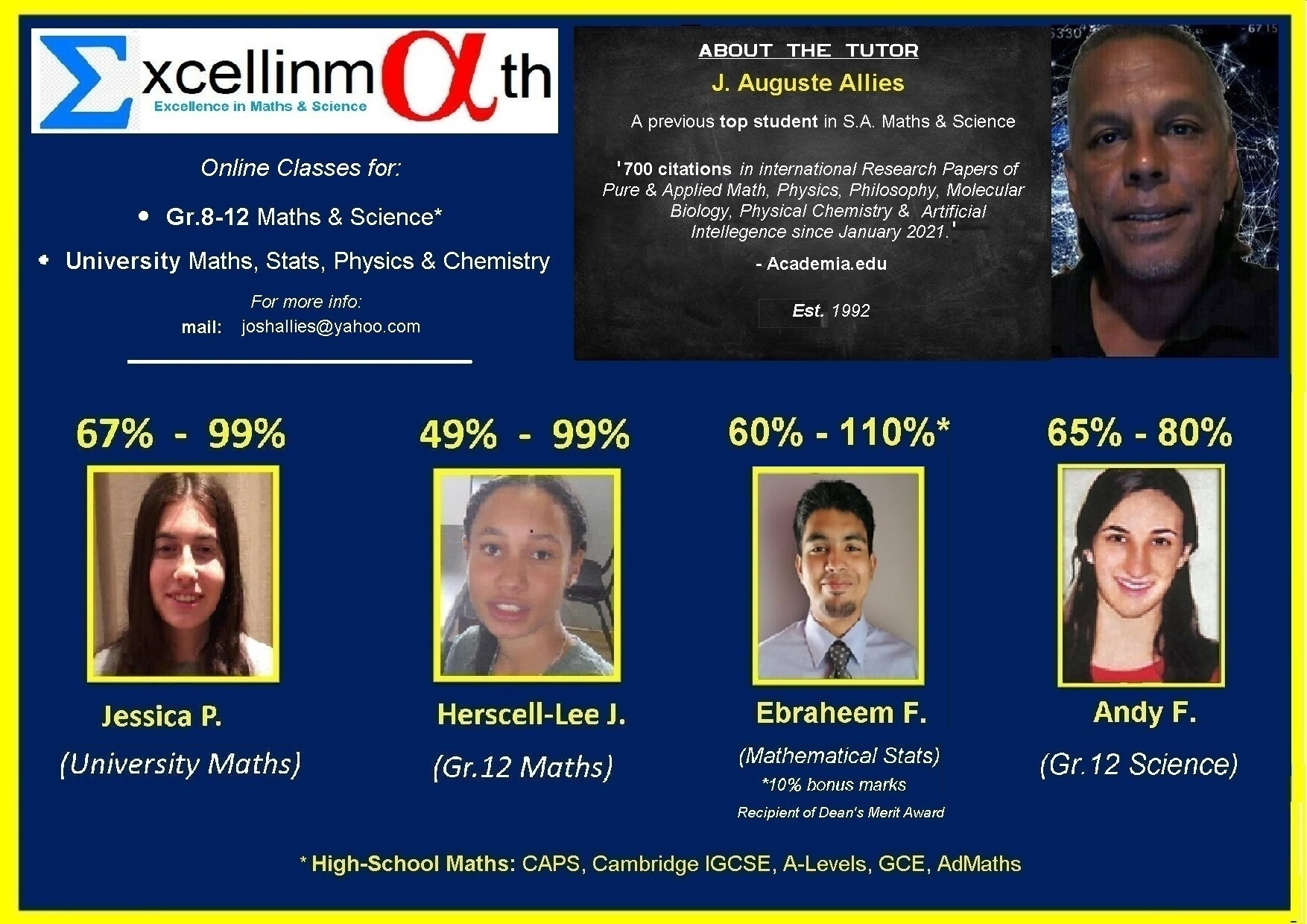 High-school Math & Science; University Math, Stats, Physics & Chemistry Online Tuition Offered